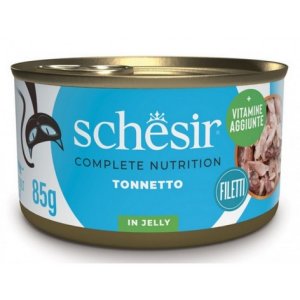 Cibo umido per gatti adulti Schesir in Gelatina, 100% ingredienti naturali e il top della qualità in differenti e deliziose variazioni a base di tonnetto o pollo in delicata gelatina, senza coloranti.