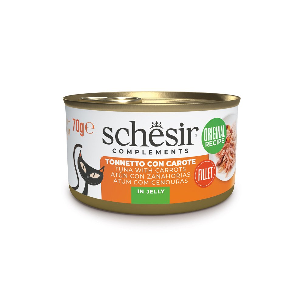I prodotti complementari Schesir sono l'ideale da abbinare al secco per un mix feeding che fa leva sulla naturalit degli ingredienti: accompagna alle crocchette la freschezza di filetti di tonno cotti a vapore e accuratamente selezionati abbinati a un topping di gustose carote, per completare con gusto l'alimentazione del tuo gatto.