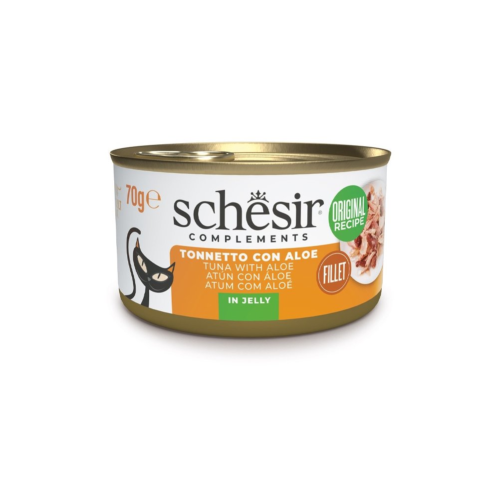 I prodotti complementari Schesir sono l'ideale da abbinare al secco per un mix feeding che fa leva sulla naturalit degli ingredienti: accompagna alle crocchette la freschezza di filetti di tonno cotti a vapore e accuratamente selezionati con l'aggiunta di aloe, pianta nota per le sue proprit benefiche, per completare con gusto l'alimentazione del tuo gatto.
