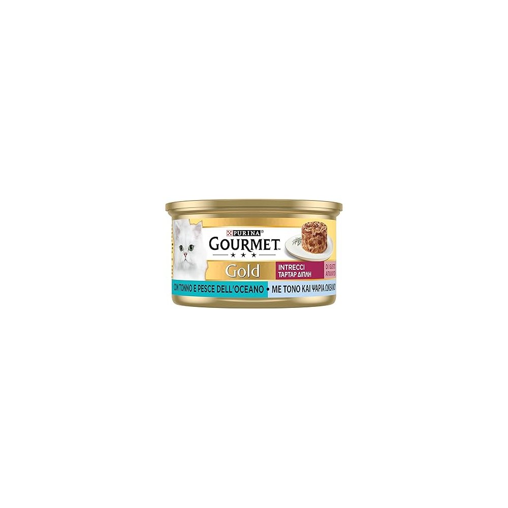 GOURMET Gold Intrecci di Gusto è preparato con pezzettini finemente sminuzzati di manzo e pollo, salmone e merluzzo, o altre varietà attentamente selezionate, insaporite con cura da un tocco di salsa: prelibate creazioni dal duplice gusto, per deliziare il tuo gatto ad ogni assaggio. Tutte le ricette GOURMET Gold non contengono coloranti, conservanti e aromi artificiali aggiunti.