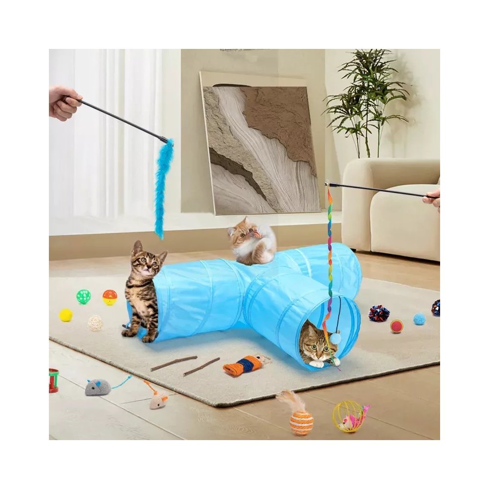 Il Cat Tunnel con Play Set è uno dei giocattoli più creativi e divertenti per i nostri amici pelosi, che li terrà impegnati per molte ore.