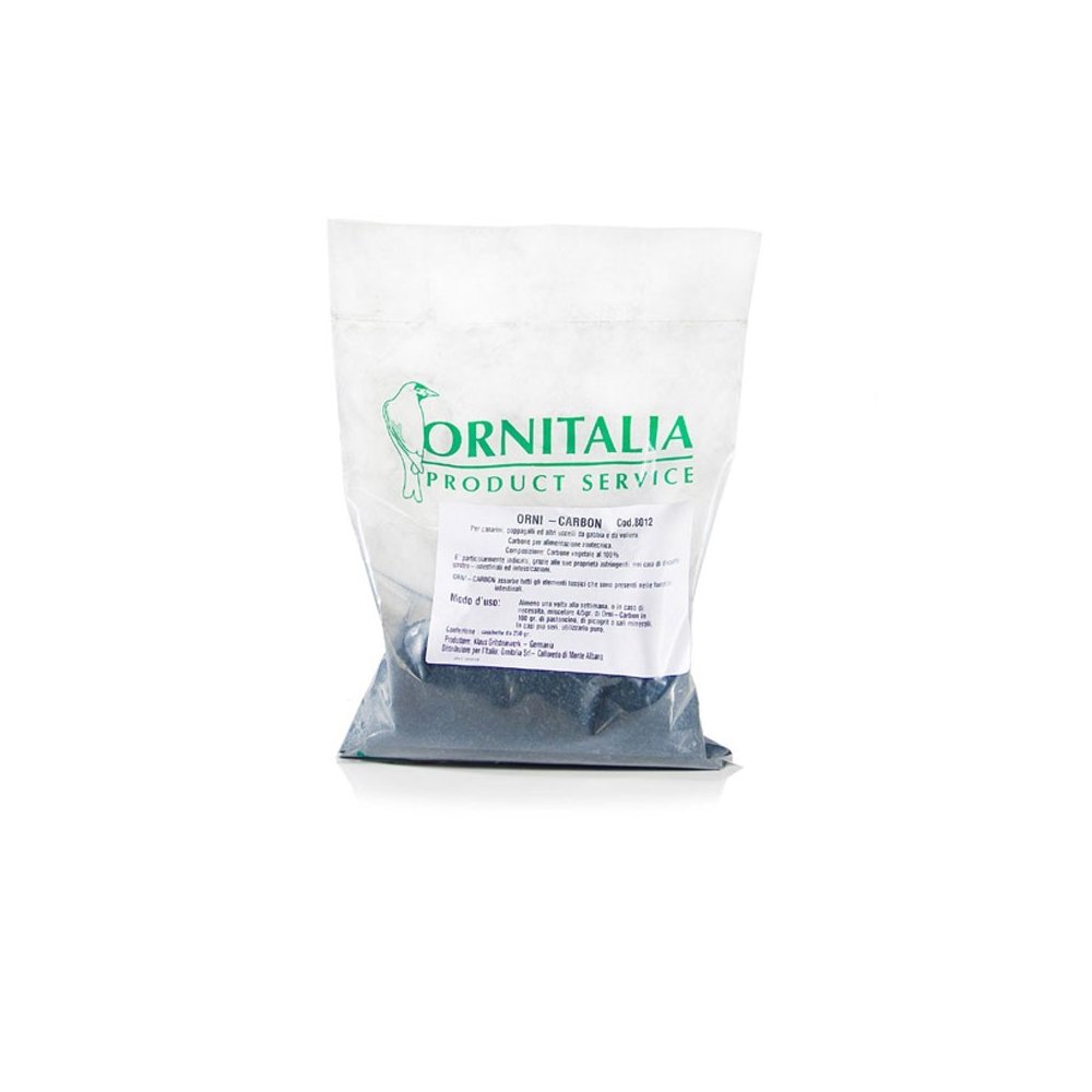Ornicarbon di Ornitalia è carbone vegetale al 100%. E& 039; un prodotto da utilizzare in casi di disturbi gastrointestinali ed intossicazioni.