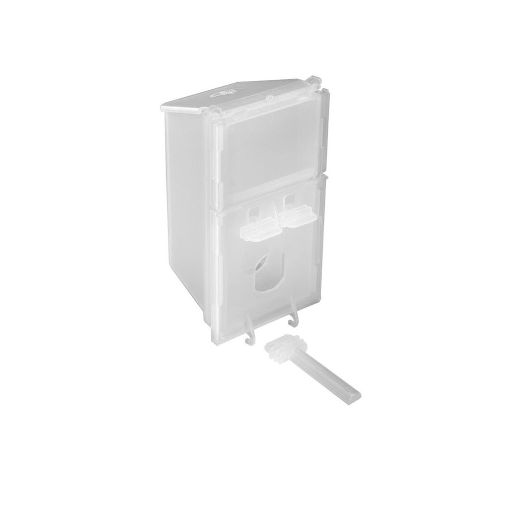 La mangiatoia antispreco, modello "Economy feeder" della 2 GR, è una mangiatoia indicata per canarini ed uccelli esotici. Può essere collocata solo all'esterno delle gabbie o delle voliere, in corrispondenza dello sportellino piccolo adibito al posizionamento delle mangiatoie esterne. Può contenere fino ad un massimo di 250 grammi di semi e permette di mantenerli sempre puliti. E' una mangiatoia che si carica dall'alto ed è interamente in plastica ciò permette che la pulizia ed il lavaggio sia molto semplice. Possiede un solo foro per l'alimentazione. Disponibili con diametro 24 (art.115).