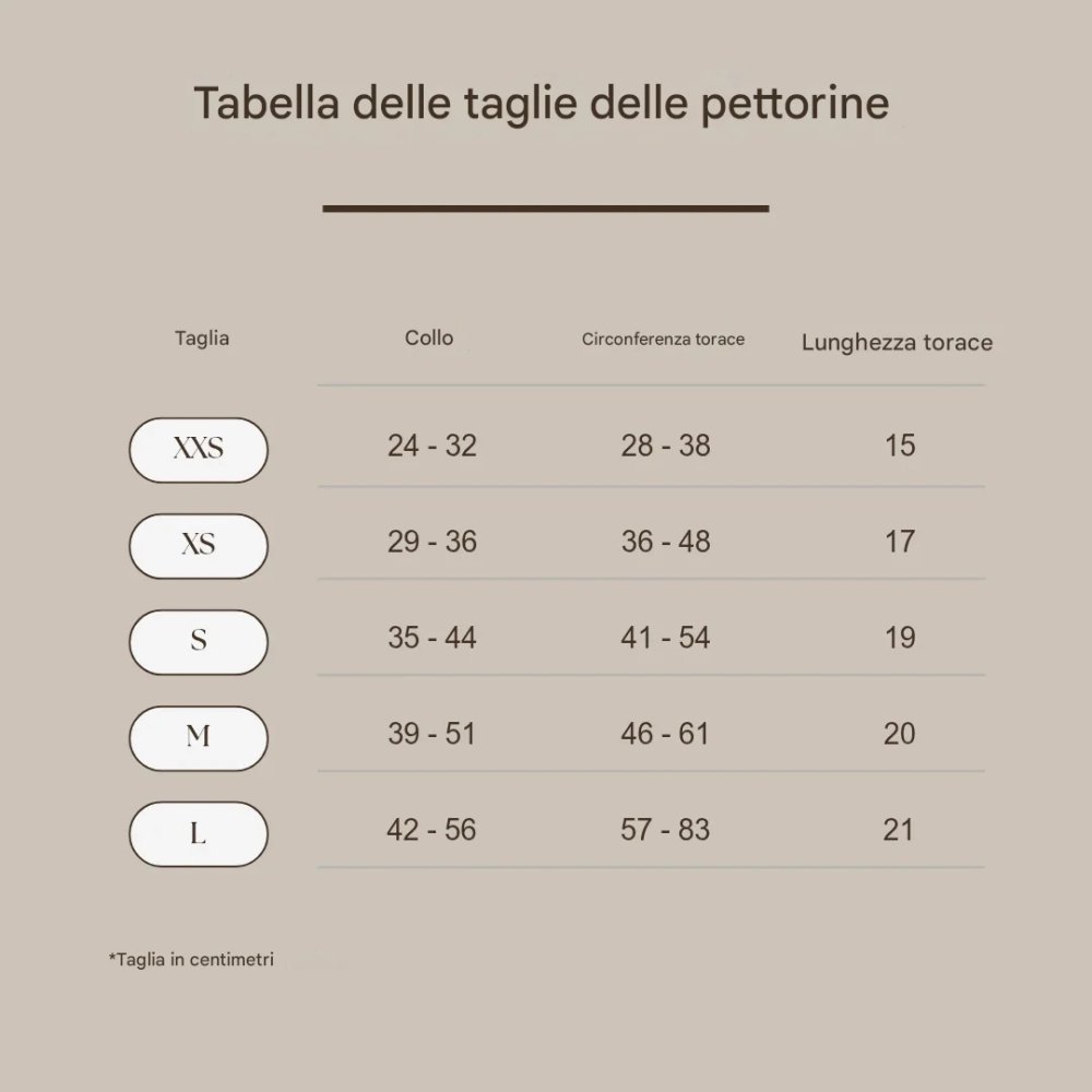 Sottile, elegante e intrecciata alla perfezione: la nostra PETTORINA FLOWERS è un classico senza tempo per i cani che amano lo stile chic. Con i suoi toni neutri e la delicata trama floreale, questa pettorina aggiunge un tocco di sobria raffinatezza al guardaroba di qualsiasi cucciolo. Che si tratti di un brunch al parco o di una passeggiata informale, il tuo cane avrà un aspetto impeccabile da ogni angolazione.