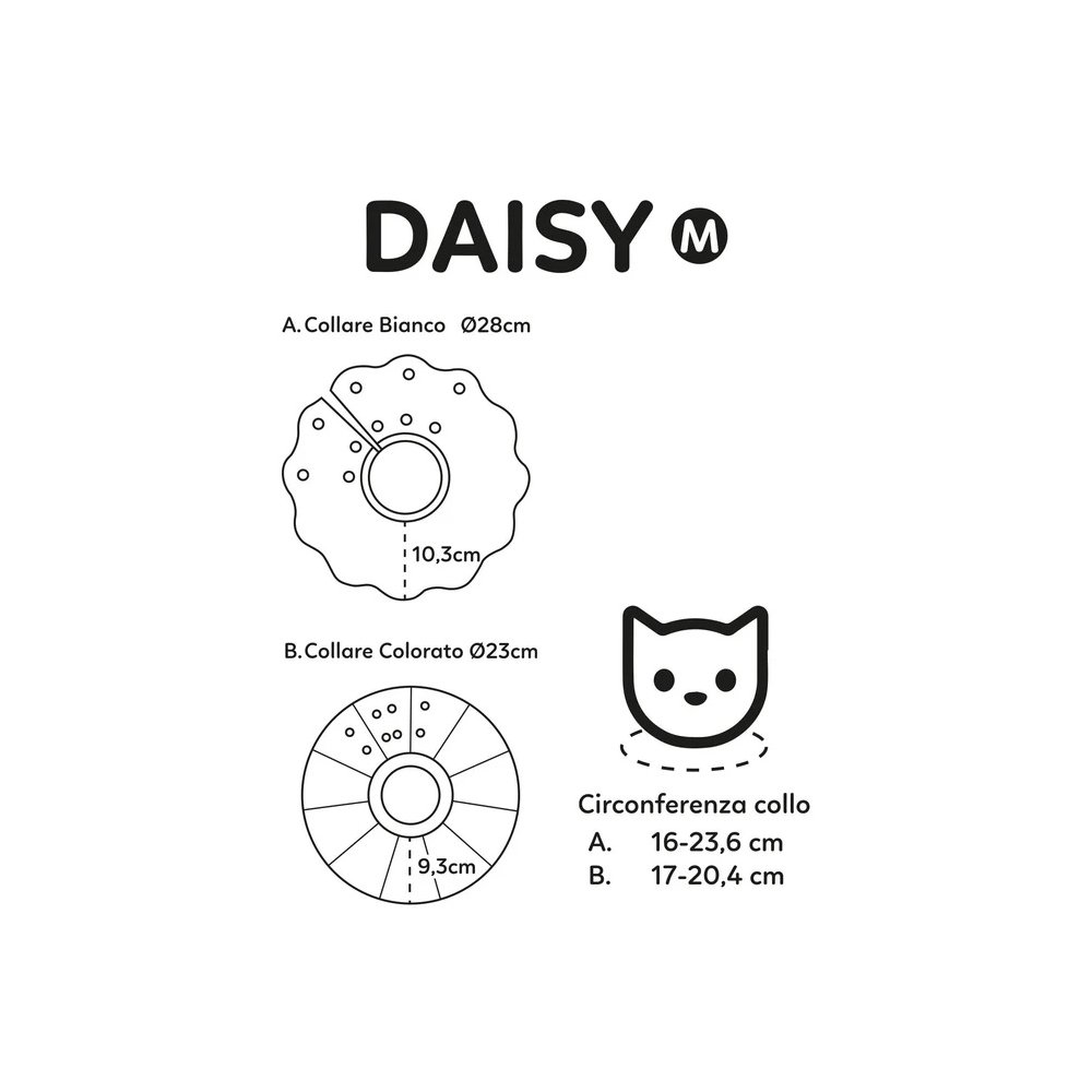 Daisy è stato progettato per risolvere i limiti dei classici collari rigidi, spesso ingombranti e fastidiosi. Grazie alla sua forma ergonomica e all imbottitura soffice, rappresenta una soluzione delicata ma efficace per proteggere le ferite post-operatorie o le zone irritate.