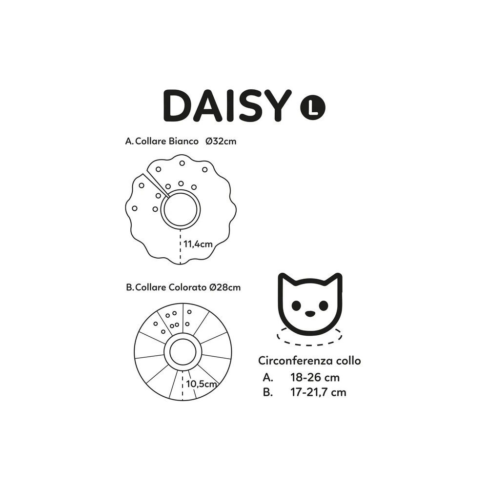 Daisy è stato progettato per risolvere i limiti dei classici collari rigidi, spesso ingombranti e fastidiosi. Grazie alla sua forma ergonomica e all imbottitura soffice, rappresenta una soluzione delicata ma efficace per proteggere le ferite post-operatorie o le zone irritate.