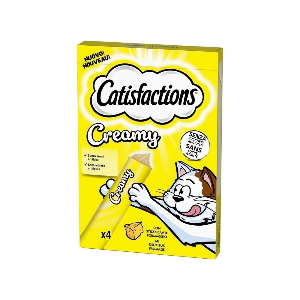 Scegli il Catisfactions Snack Gatto Creamy 4x10G per coccolare il tuo amico felino con uno spuntino sano e delizioso.