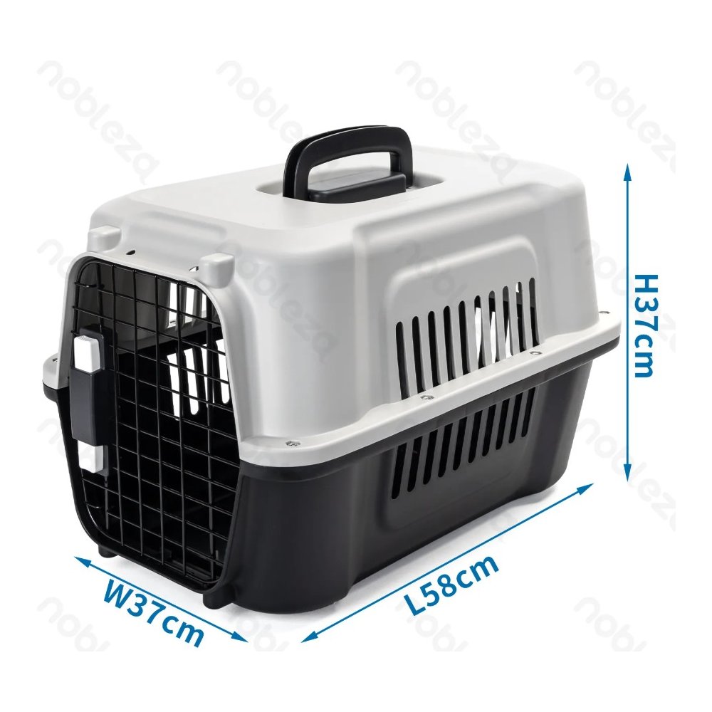 Realizzato con materiali di alta qualità come il polipropilene (PP) e il ferro, assicura robustezza e durata nel tempo. Le ampie aperture e le griglie di ventilazione assicurano una circolazione ottimale dell’aria per il comfort del tuo animale durante i viaggi. Preparati per avventure senza limiti con il tuo compagno peloso grazie al nostro trasportino rigido grigio chiaro e nero, il compagno ideale per ogni avventura.